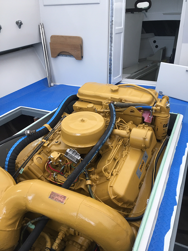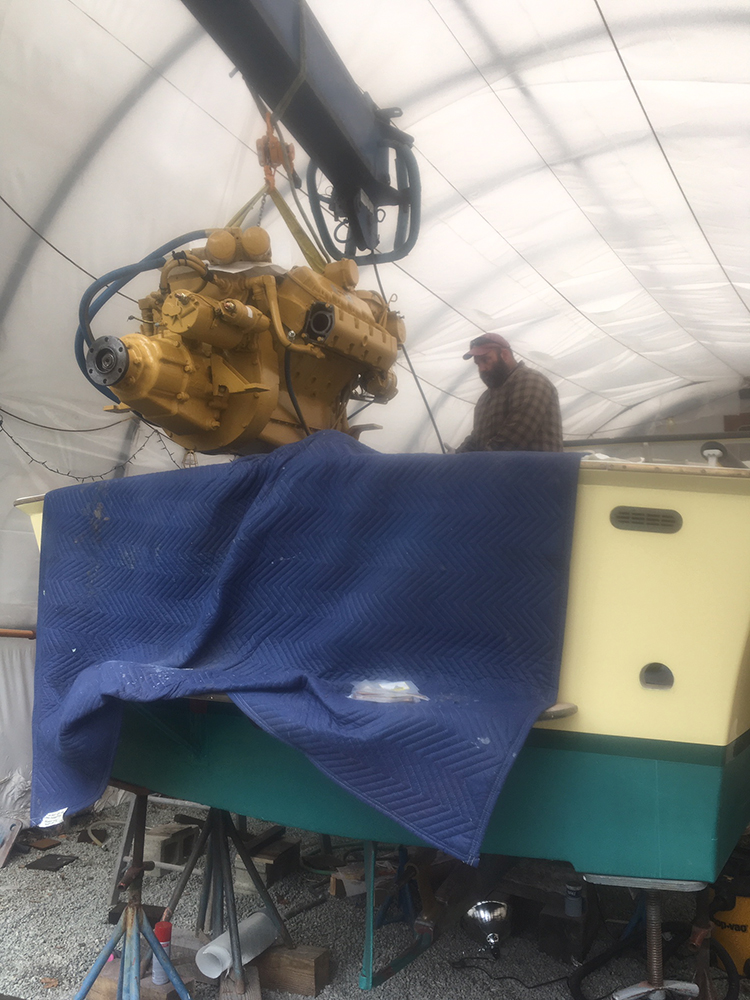 Removed very rusty, but serviceable - 3208 Caterpillar motor for a partial rebuild and also inspect bilge area under motor